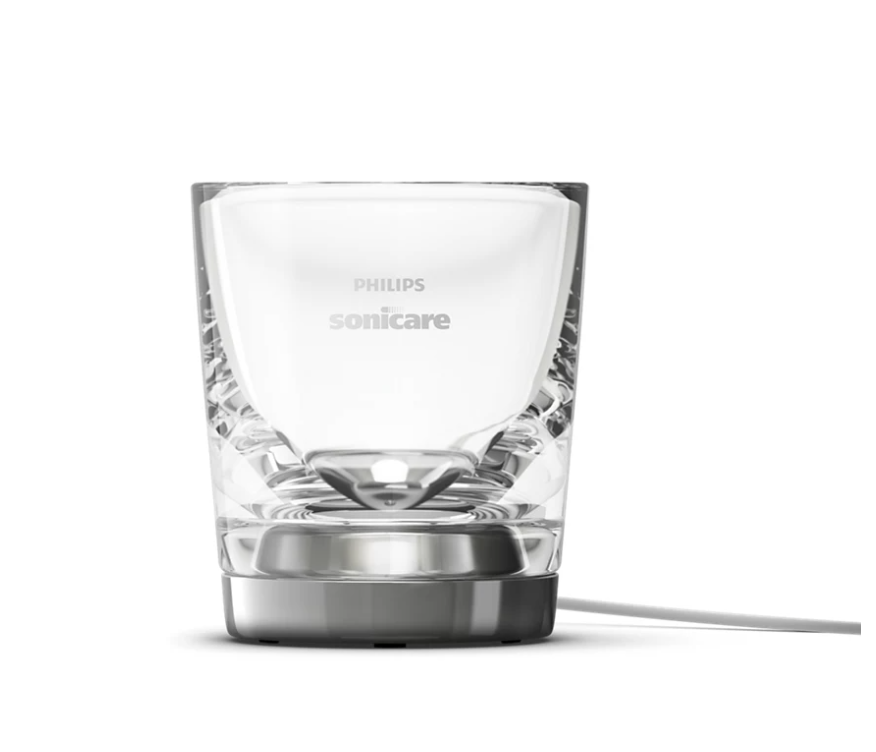 Pahar de incarcare si toc de transport de calitate superioaraIncarcarea periutei de dinti nu a fost niciodata mai simpla. Nu trebuie decat sa o pui in suportul elegant din sticla dupa ce te-ai periat si va incepe imediat sa se incarce. Pe langa faptul ca se integreaza elegant in baie, paharul de incarcare fi folosit si ca pahar pentru clatire. Beneficiaza de doua saptamani de utilizare regulata la o singura incarcare completa. Tocul de transport de calitate superioara iti permite sa depozitezi igienic periuta de dinti cand calatoresti.