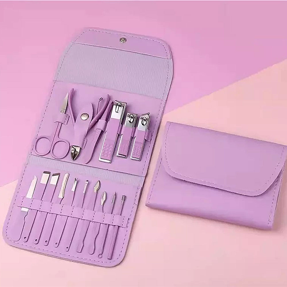 SIKSTrusa pentru Manichiura SIKS, 16 Ustensile din Otel Inoxidabil Incluse, Mov